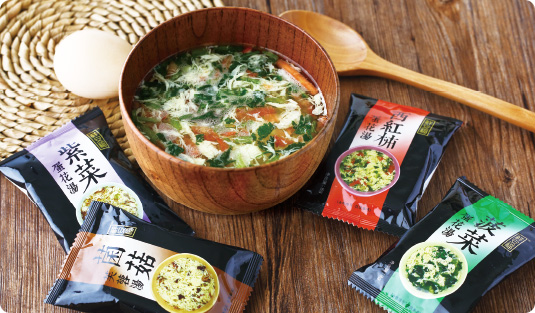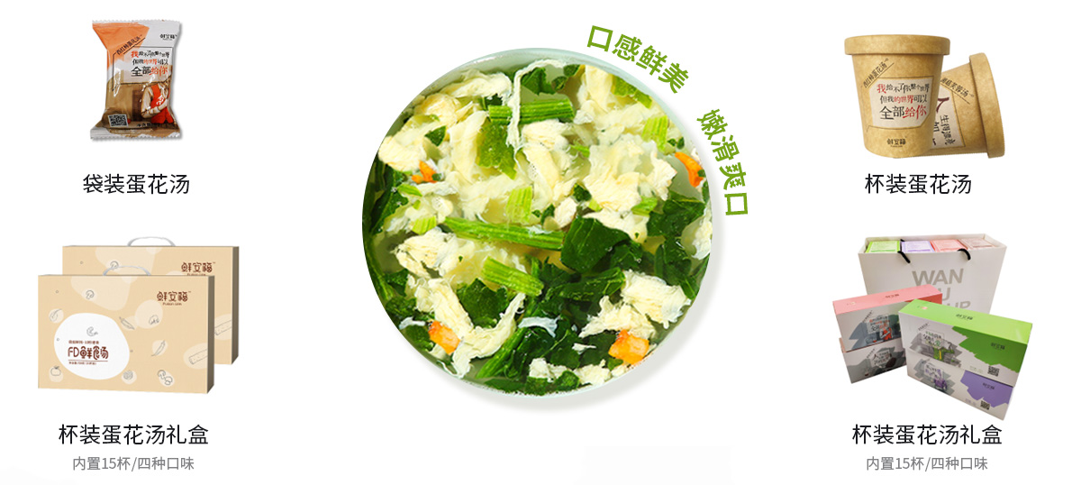 【产 品 名】 FD--蛋花汤 【规 格】 8g 【生产日期】 见包装 【保质日期】 12个月 【配 料 表】 鸡蛋、紫菜、西红柿、小白菜...... 【储藏方式】 常温、通风、阴凉干燥处 【生 产 商】 青岛4001老百汇net集团股份有限公司